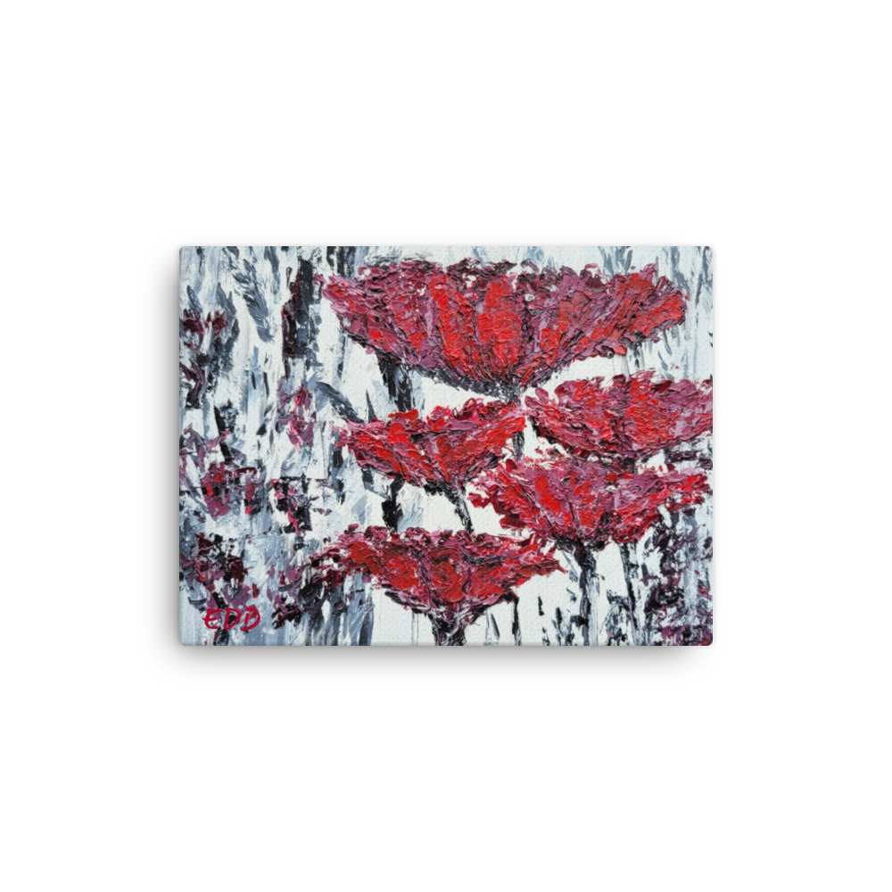 The "Anything for You" print, offered in six sizes, will brighten any room with the bright red of its blooming flowers.