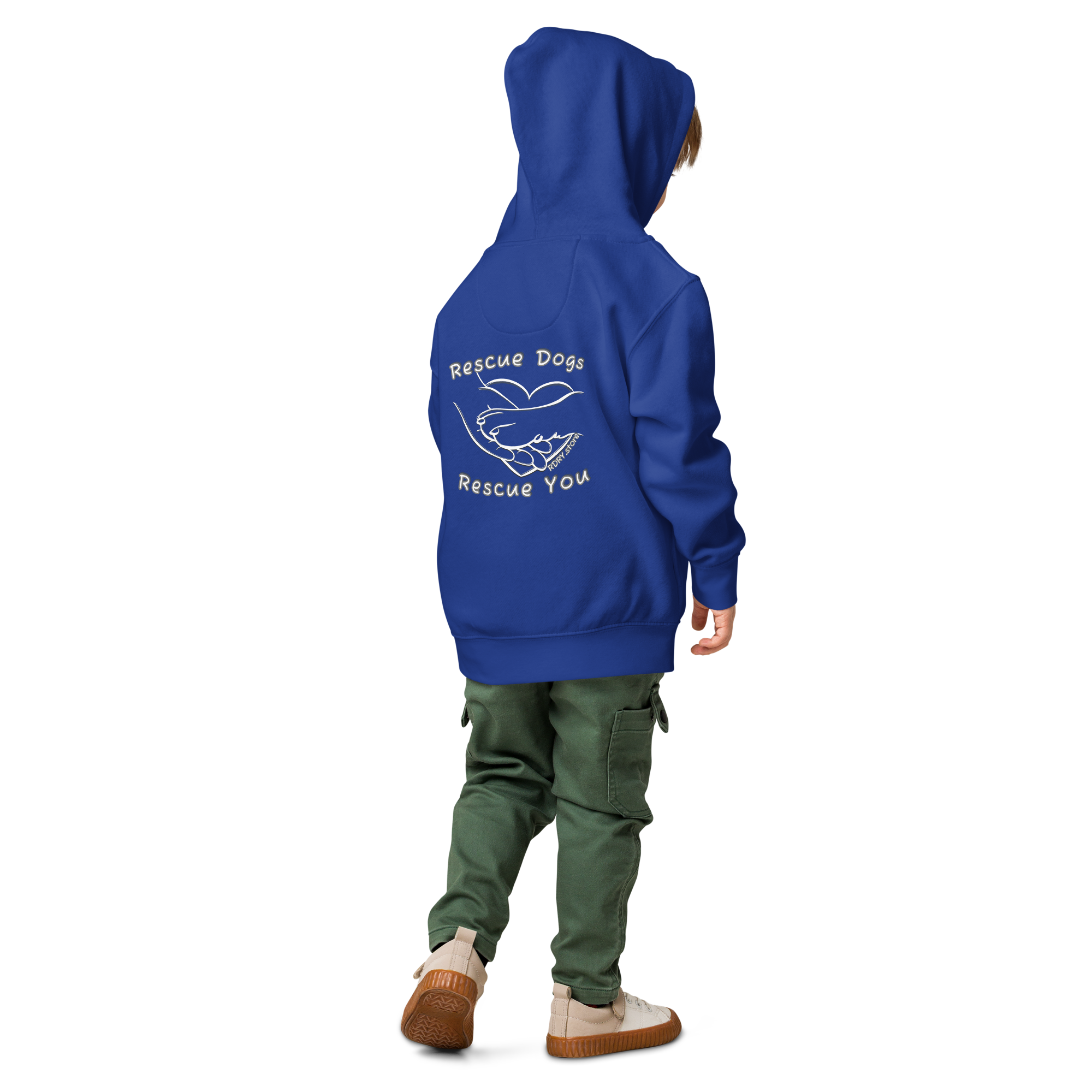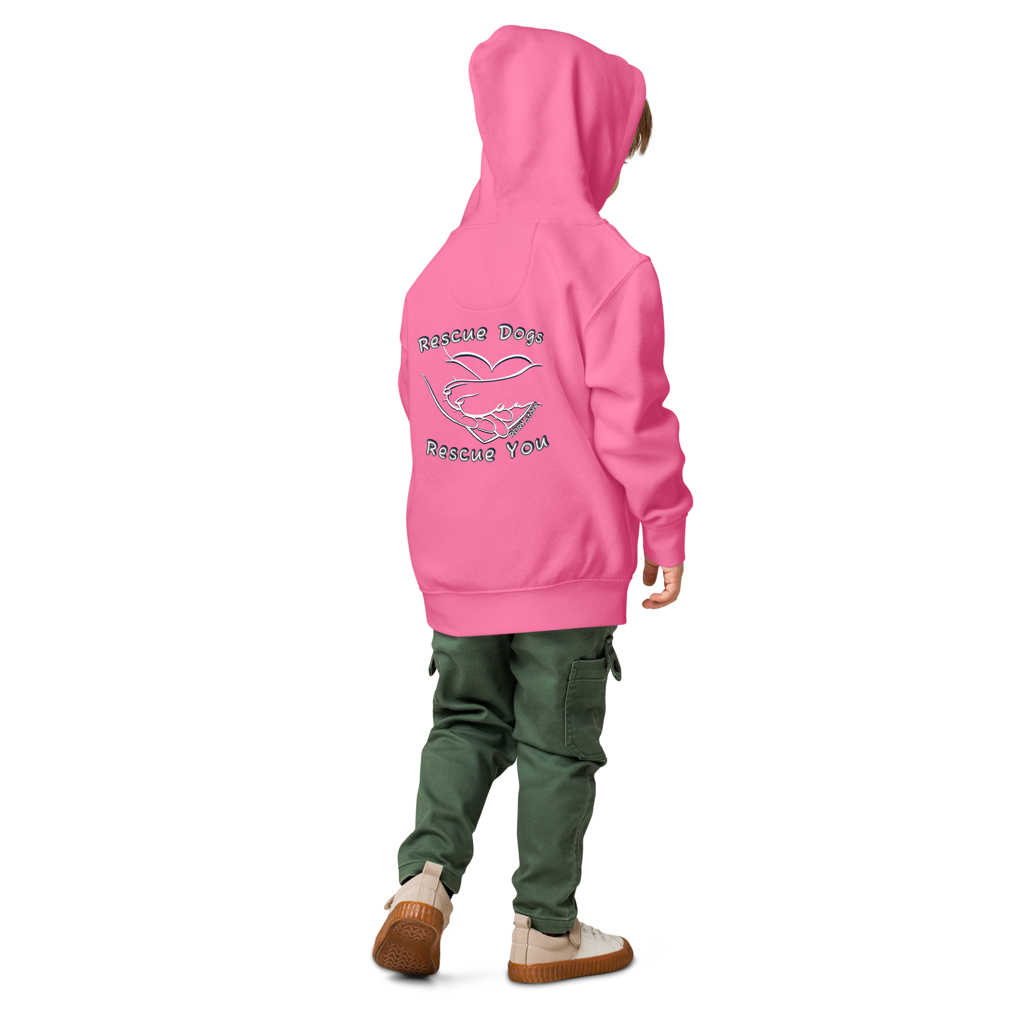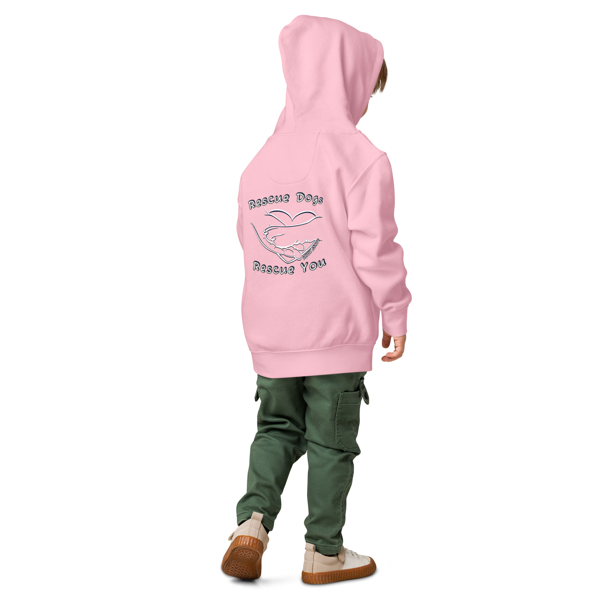 This "LiFE is BETTER WiTH A Dog" graphic pullover hoodie is perfect for your toddler to show their love for rescue dogs, featuring a heartwarming "Rescue Dogs Rescue You" graphic on the back.