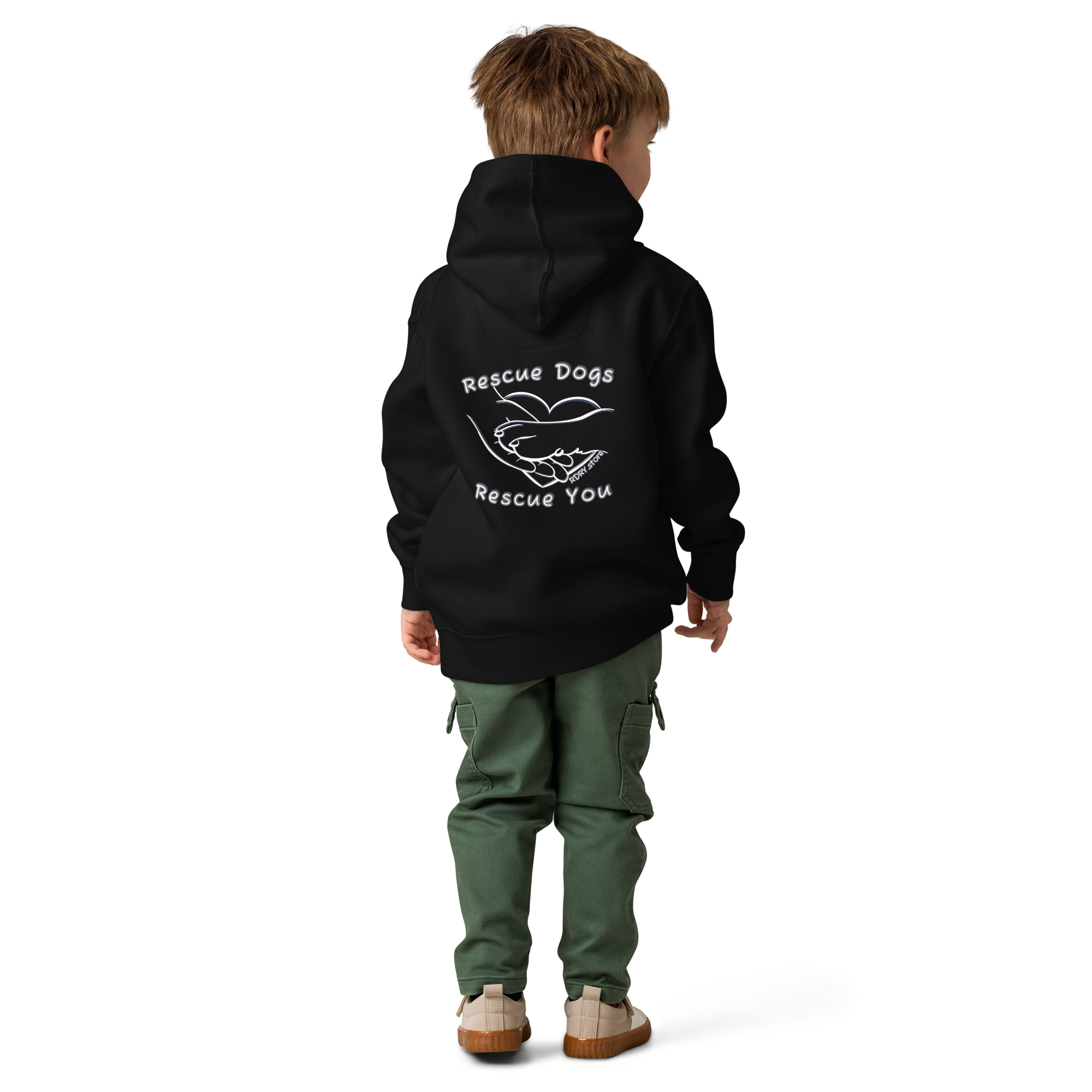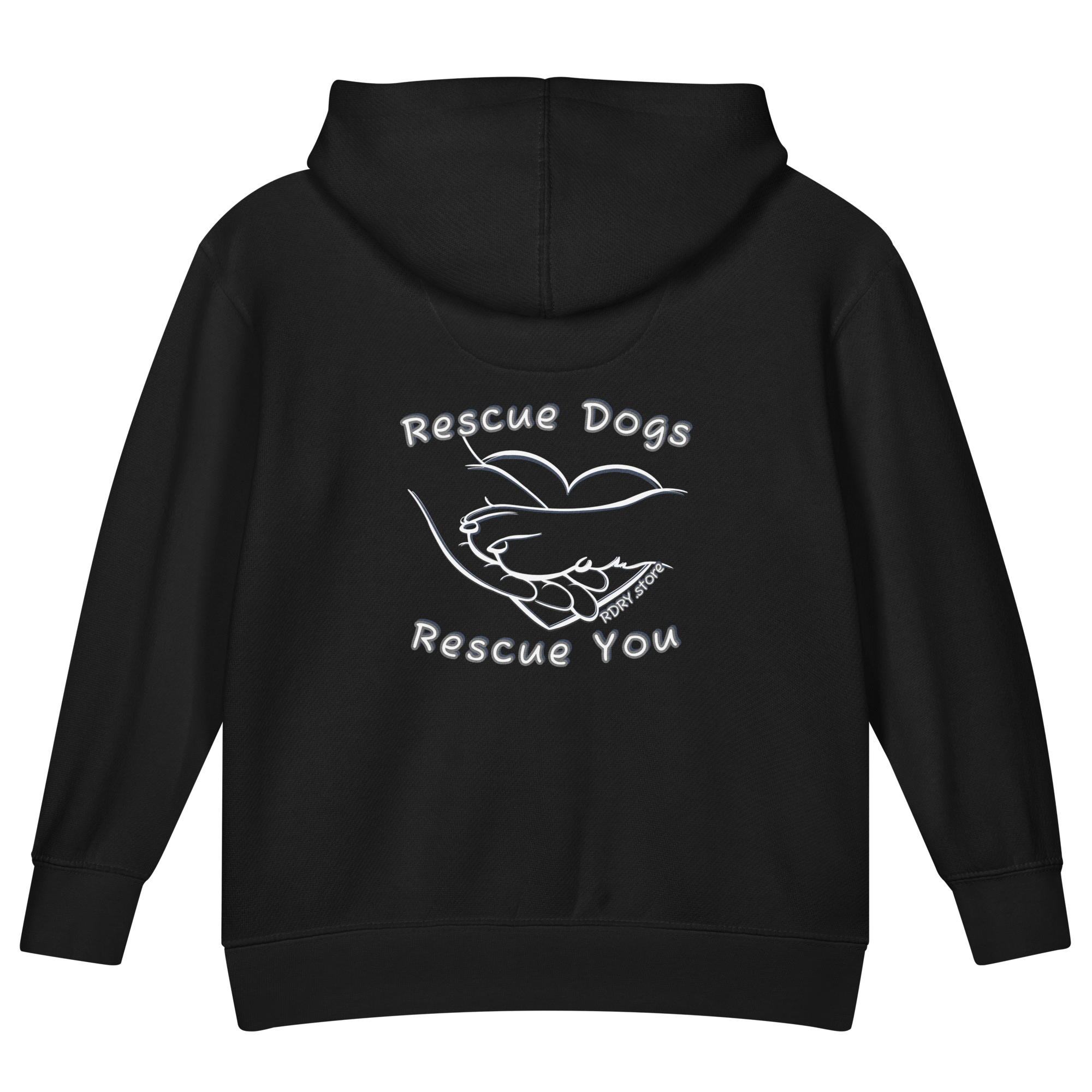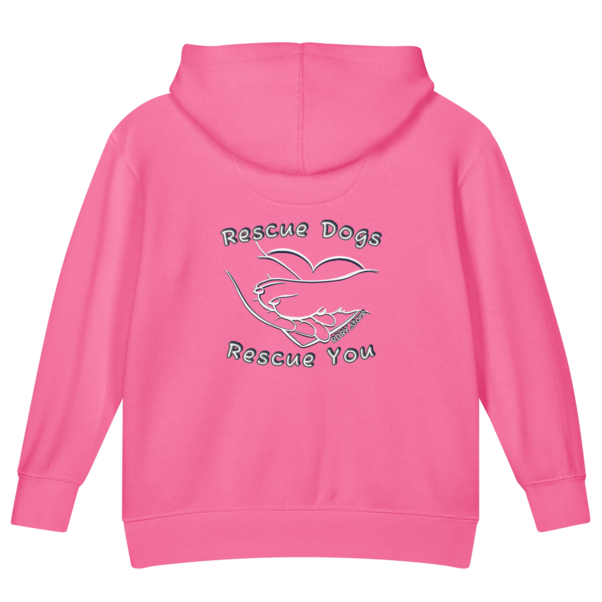 This "LiFE is BETTER WiTH A Dog" graphic pullover hoodie is perfect for your toddler to show their love for rescue dogs, featuring a heartwarming "Rescue Dogs Rescue You" graphic on the back.
