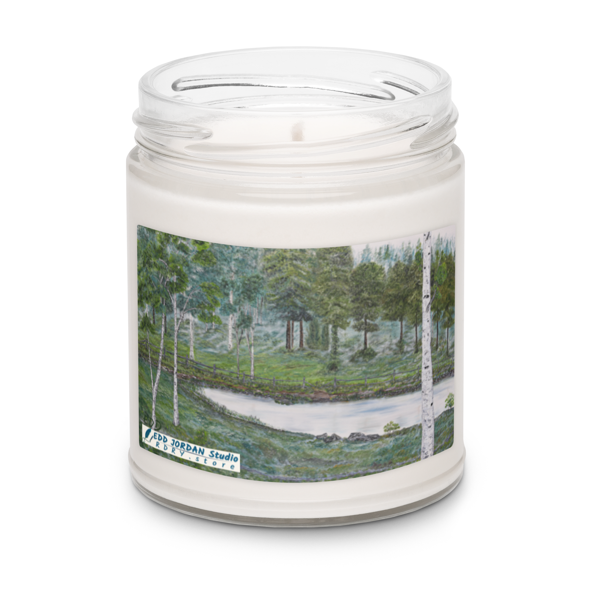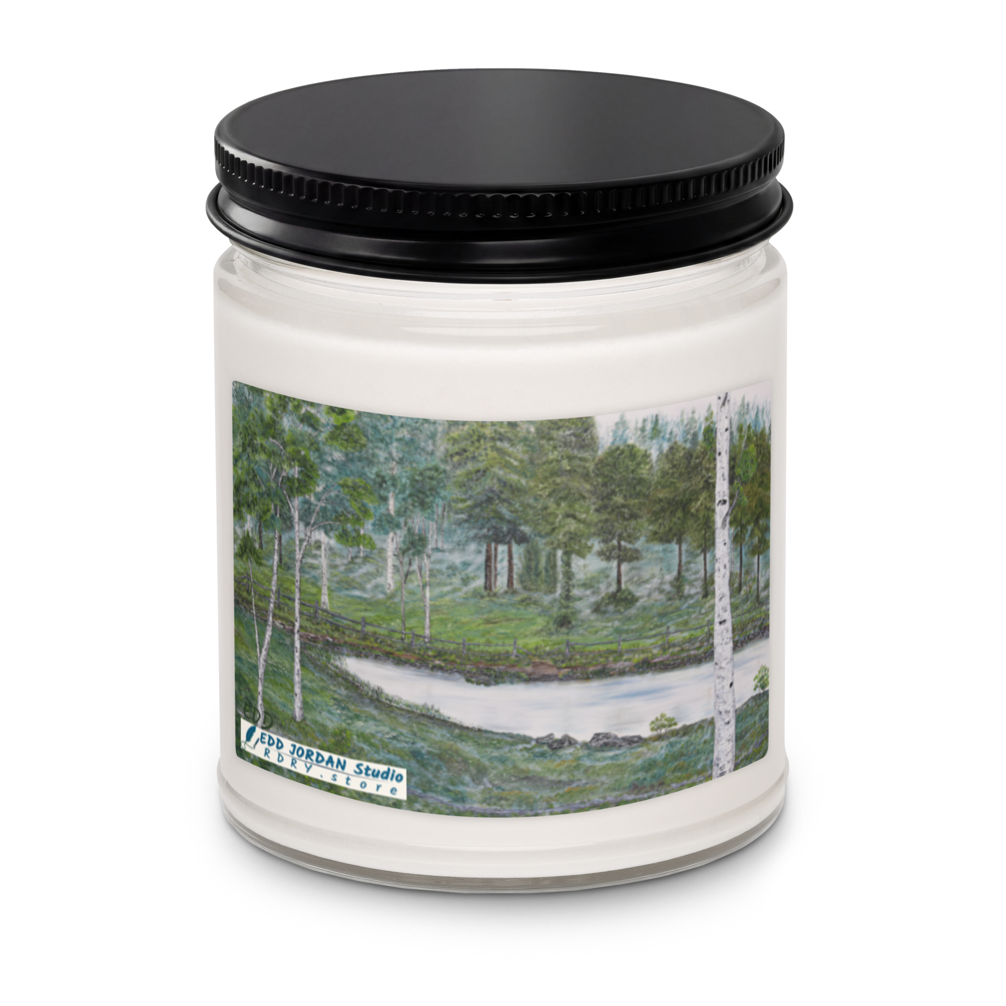 Discover the RDRY Collection featuring an EDD Jordan original Woodland Pond print—minimal, modern, and unmistakably refined. Soft, clean, and calming. This soy candle fills the room with its unforgettable fragrance. It comes in a smooth glass jar that fits any space—perfect for gifting or winding down.